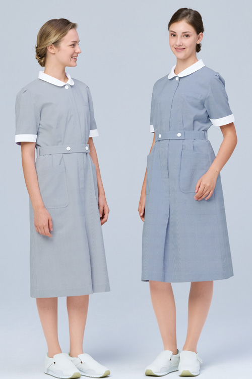 【歯科・医療ユニフォーム】伝統的で品位のあるグレンチェック柄、清楚感を感じさせる ワンピース【2色】