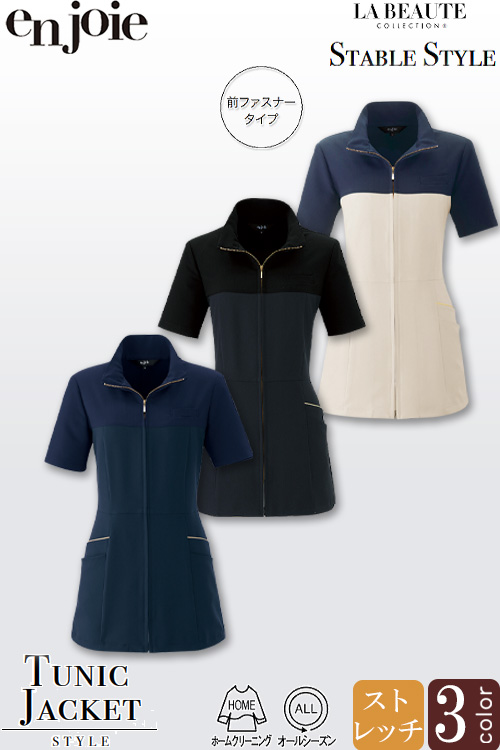 • 医療・美容現場向け チュニックジャケット スタンドカラーで美スタイル 上下で異素材使用 スペック 42084