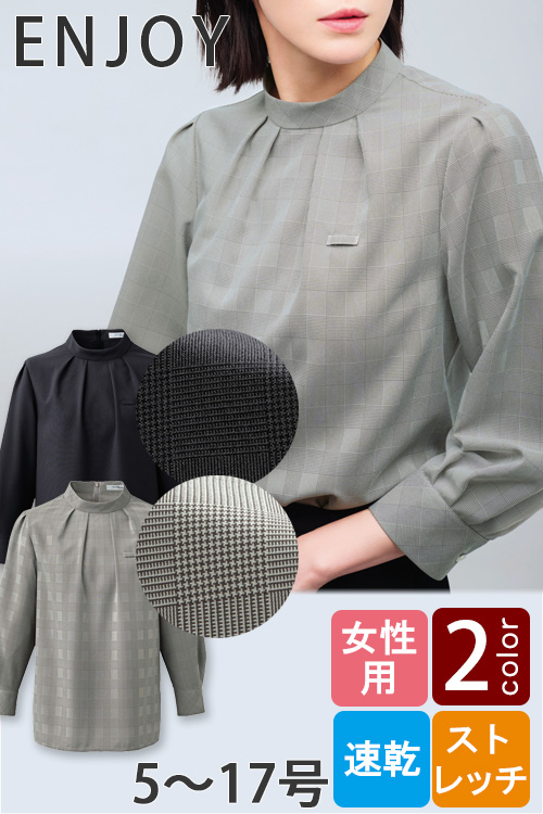 【ホテル・受付・接客制服】グレンチェック柄スタンドカラーブラウス2色【女性用】