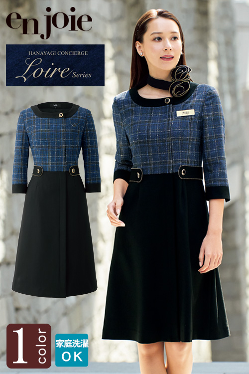 【受付・おもてなし・事務】羽織って着られるブルーチェックワンピース【女性用】 62150