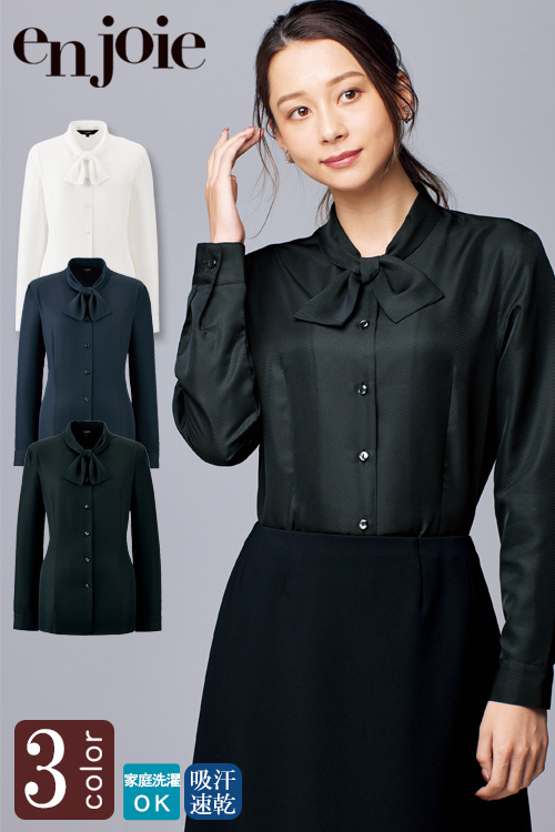 • 【受付・おもてなし・事務】簡単リボンの長袖ブラウス【3色】 カラー展開