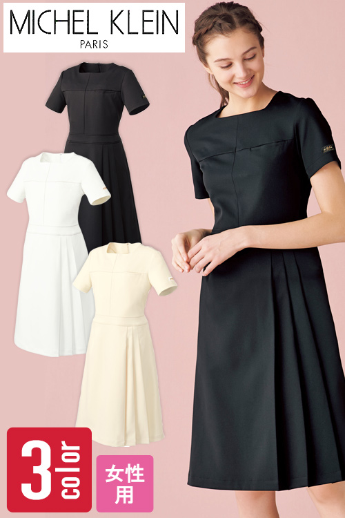 【病院・クリニック・サロン制服】ミッシェルクラン 部分プリーツが大人かわいいワンピース【3色】
